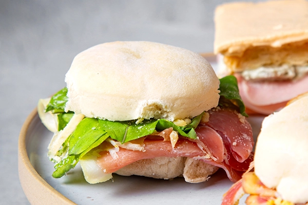 Bocado con pan de manteca o pan árabe rellenos con jamón, quesos, verduras, matambre, vittel tonè o a elección. Ideales para todo tipo de eventos.