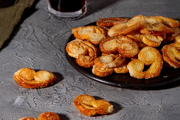 Masa de hojaldre crujiente, en forma de espiral caramelizadas. Se venden por peso. Ideales para acompañar el té o como snack dulce y liviano.