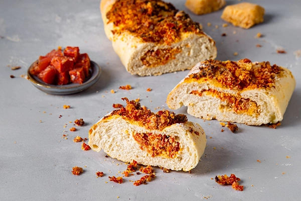 Panes de masa madre rellenos con distintas variedades de rellenos nuez y roquefort, cantimpalo y queso o aceitunas. Ideal para acompañar picadas. Rinde 6 porciones o 10 rodajas.
