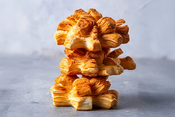 Panecillos de grasa hojaldrados, se venden el mix de trencitas, cremonitas y libritos. Paquete por 200 grs.