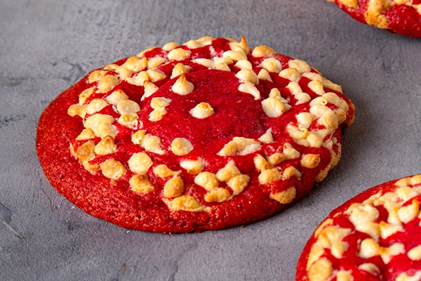 Cookie artesanal estilo red velvet, amasada con chips de chocolate blanco. Crocante por fuera y suave en su interior, con un sorprendente relleno de brownie húmedo de chocolate intenso. Se venden por unidad. Ideales para acompañar un café o darse un gusto dulce en cualquier momento del día.