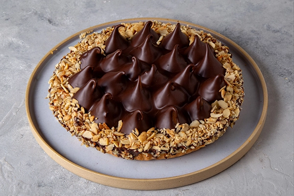 Base de masa quebrada, con picos de dulce de leche bañados en chocolate intenso con crocante de almendras en los bordes. Rinde 8 porciones aprox. Ideal para un momento dulce.